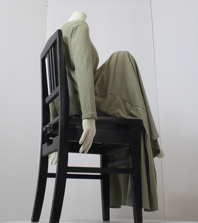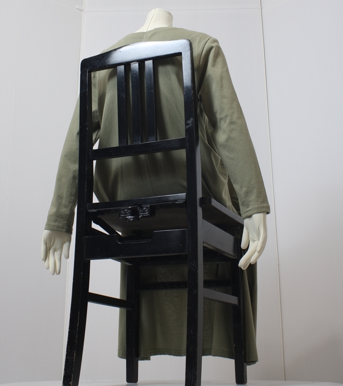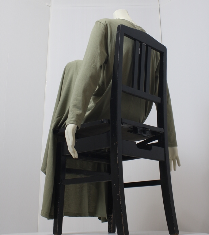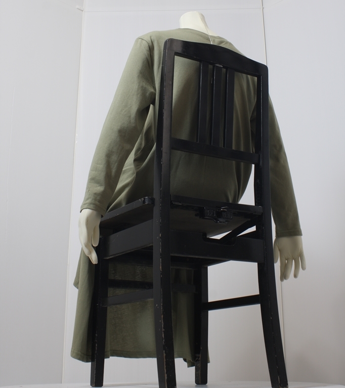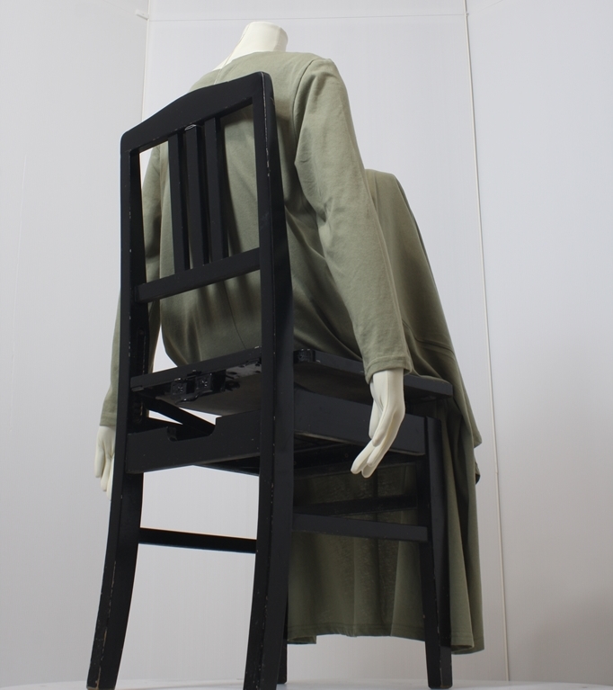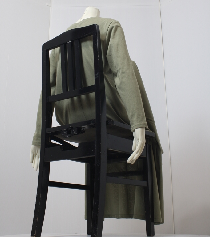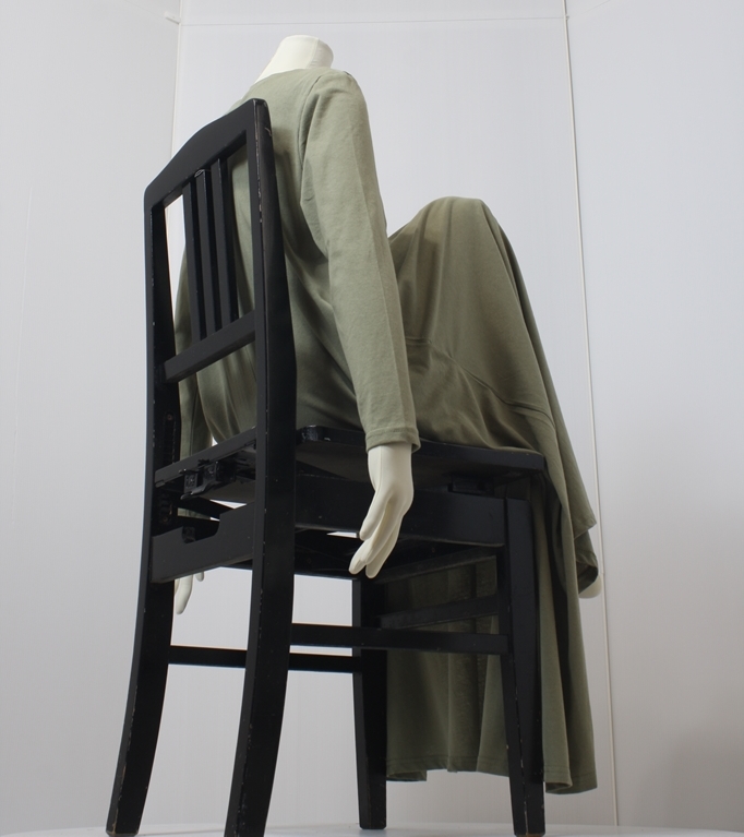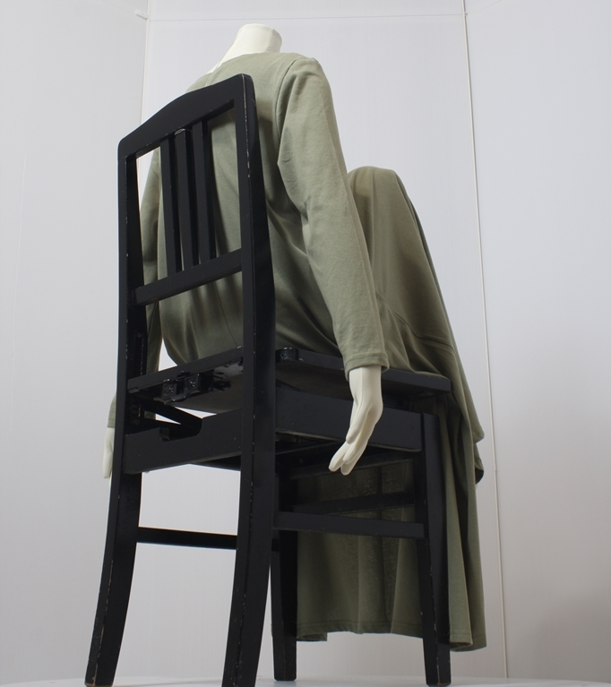 ワンピース回転ポーズcd16は、椅子に座り、両膝を持ち上げたポーズです。