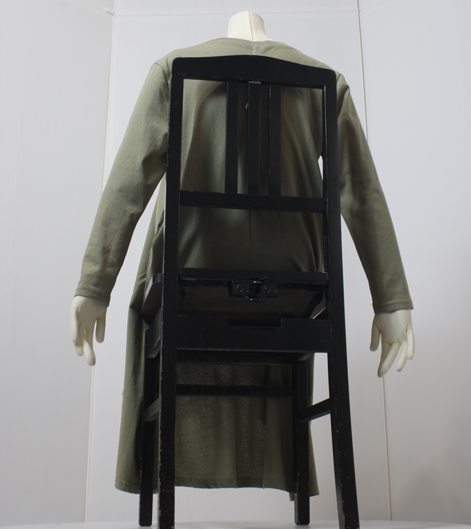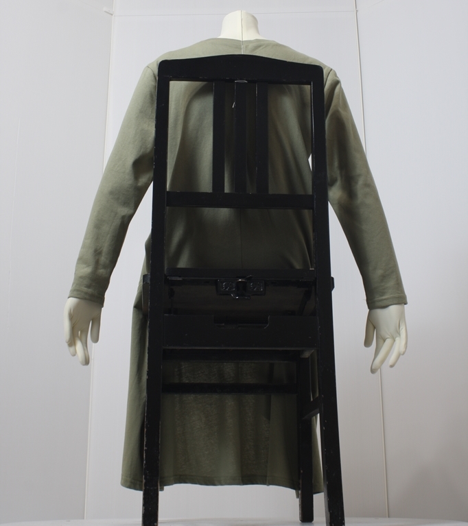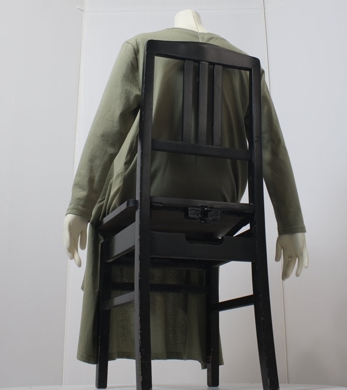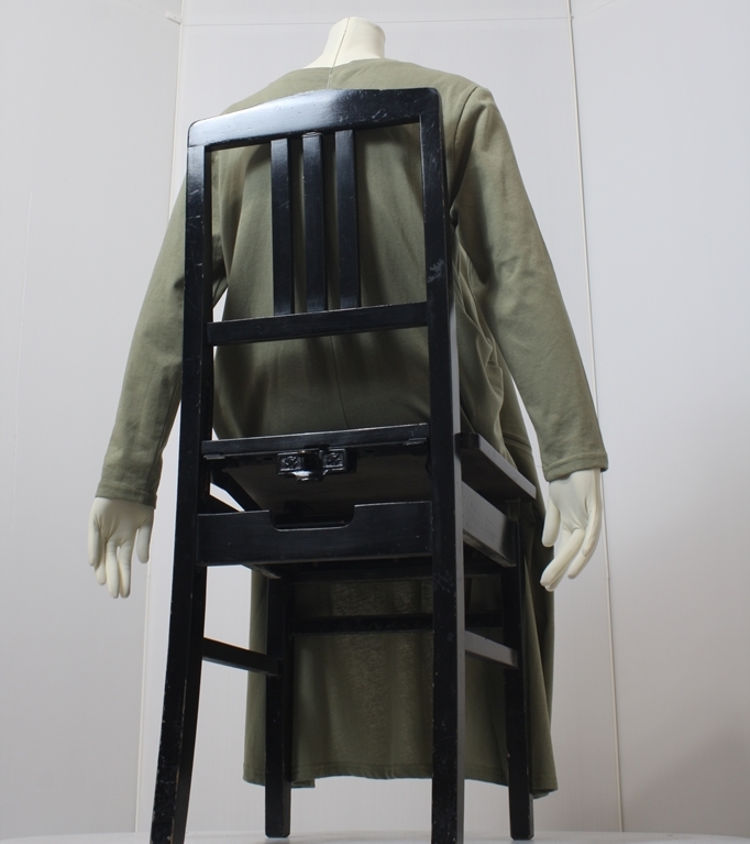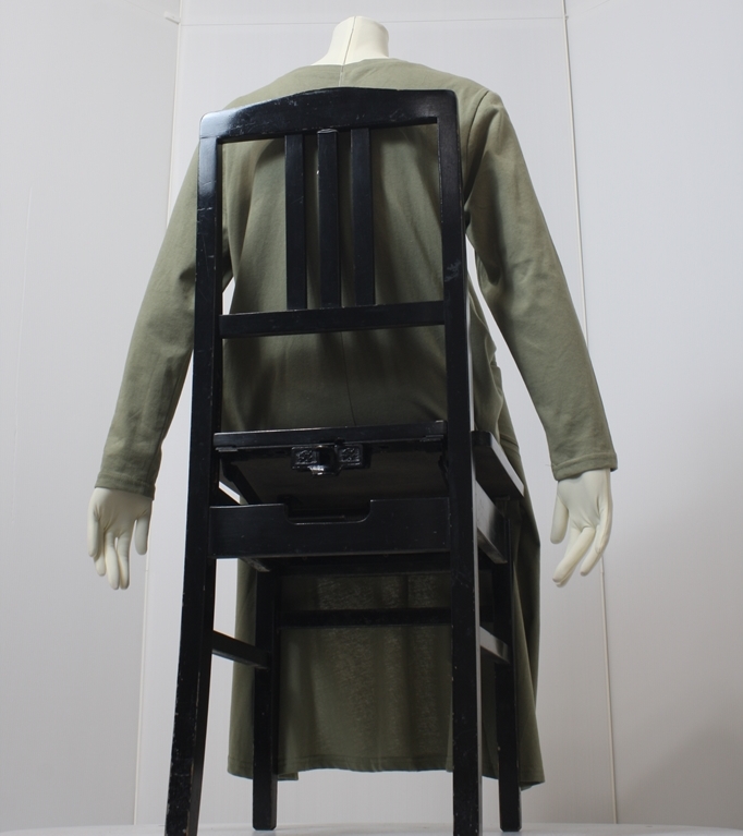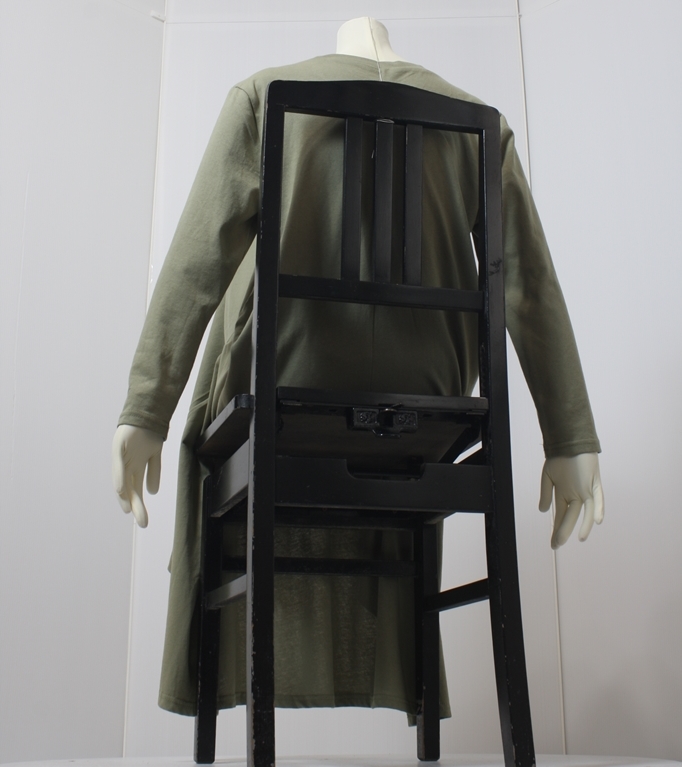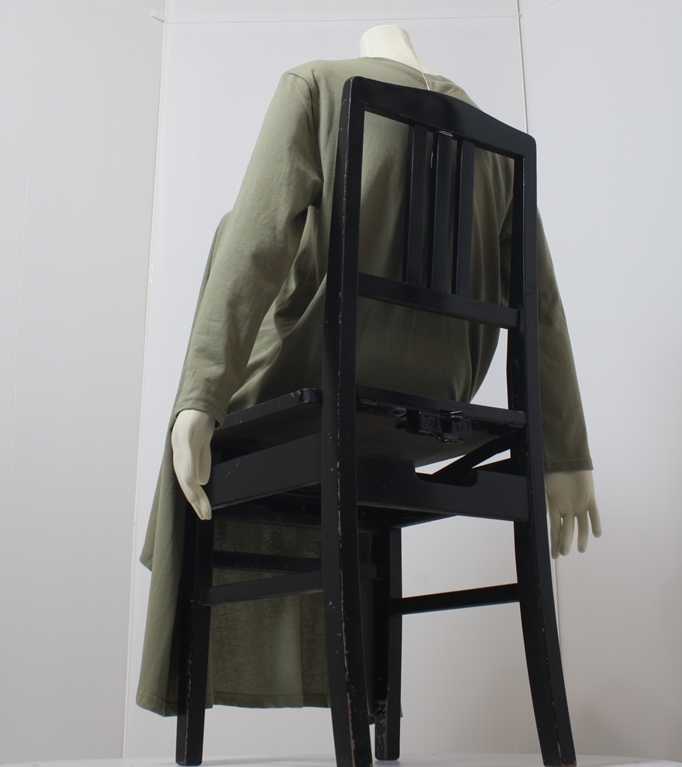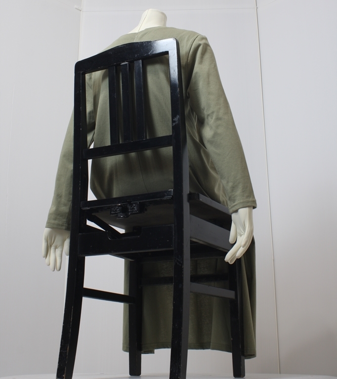 ワンピース回転ポーズcd16は、椅子に座り、両膝を持ち上げたポーズです。