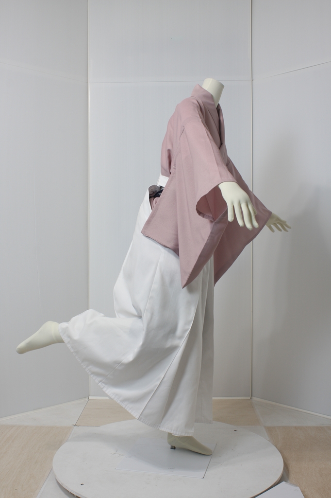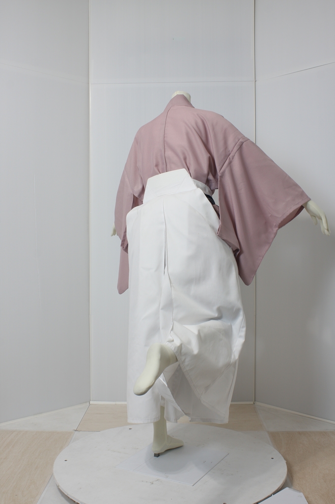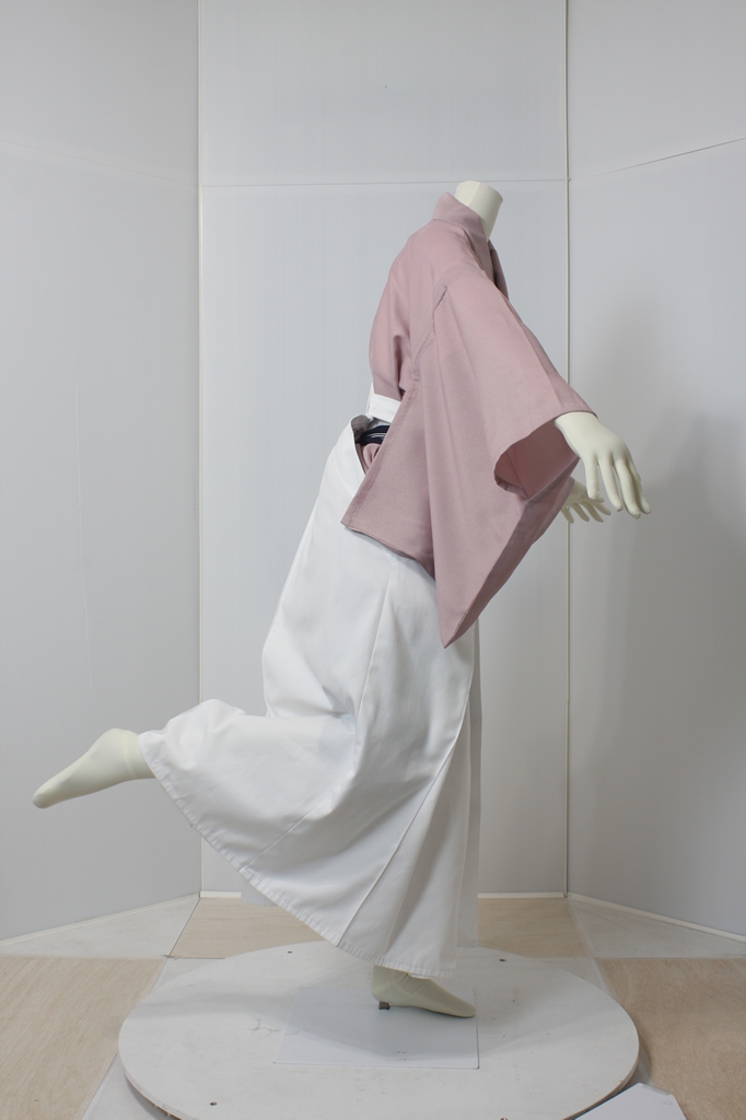 袴回転ポーズhkm07は、片膝を曲げ、足を後ろに突き出したポーズです。