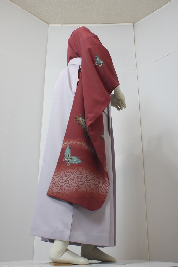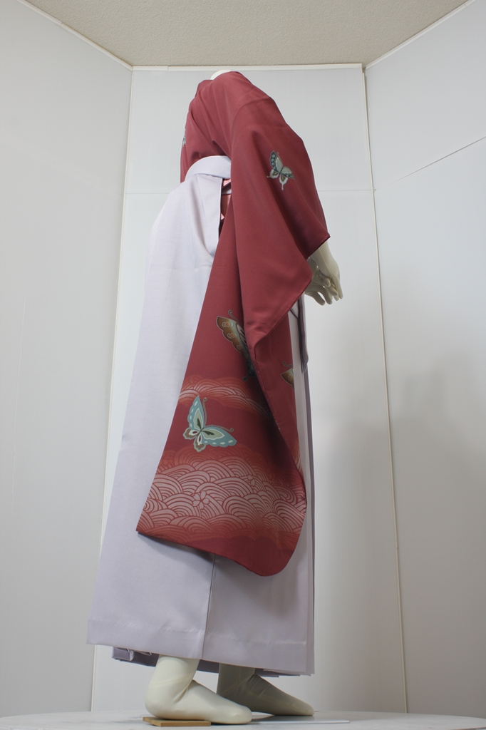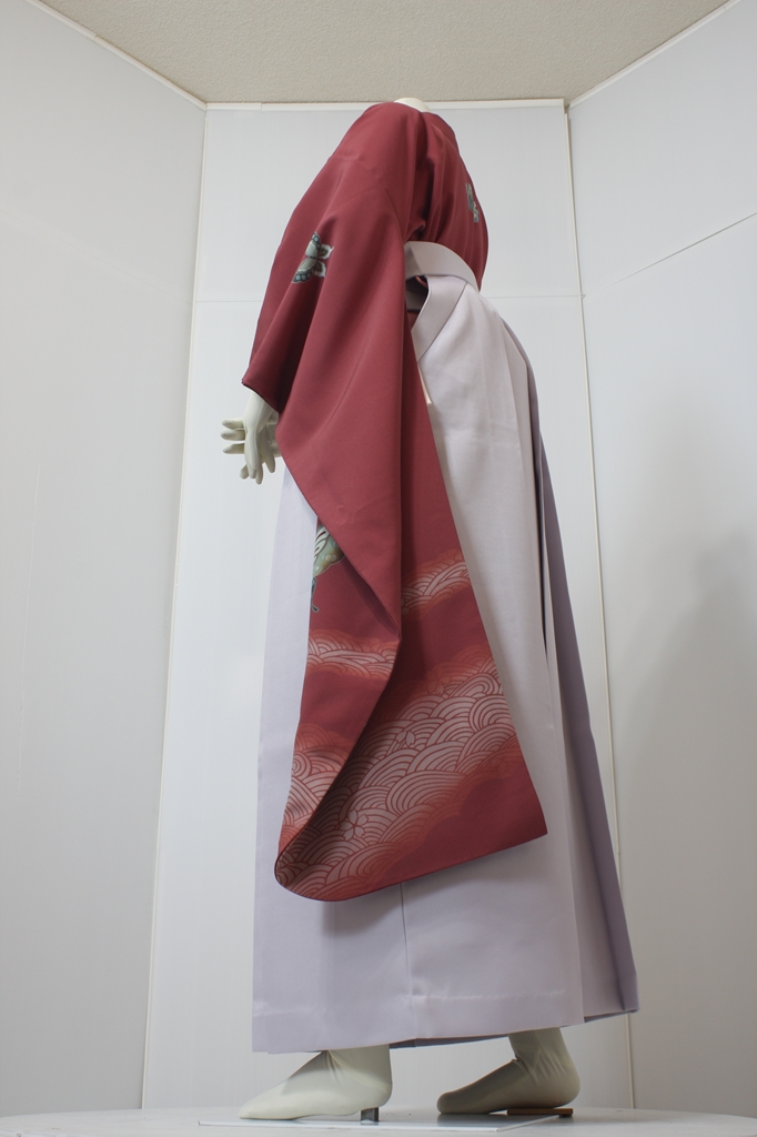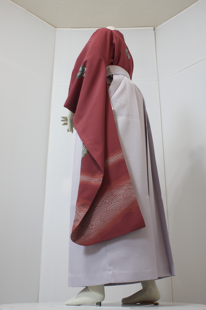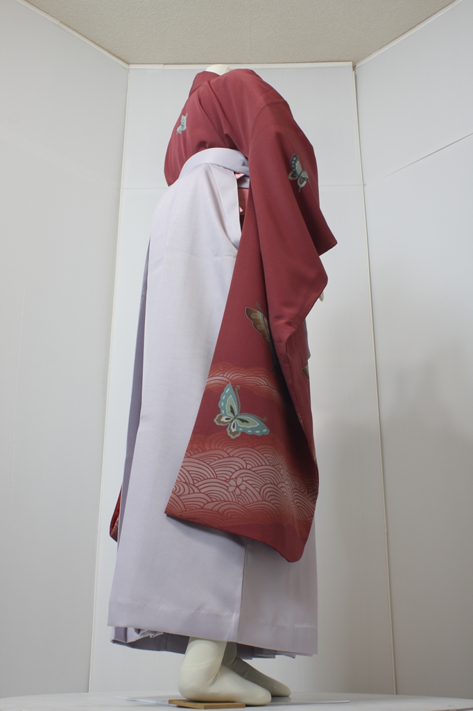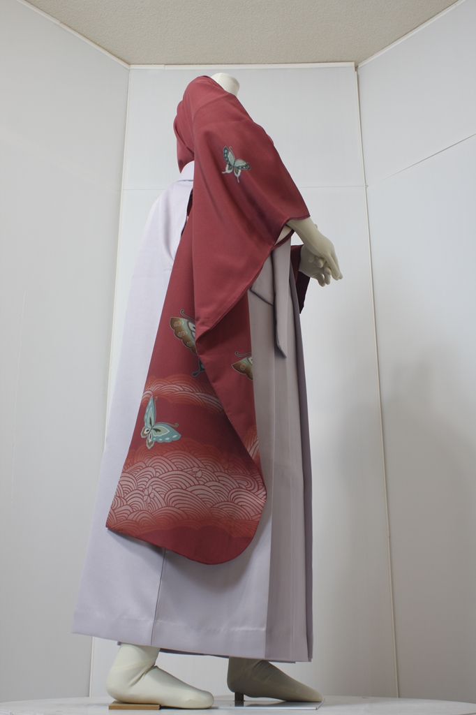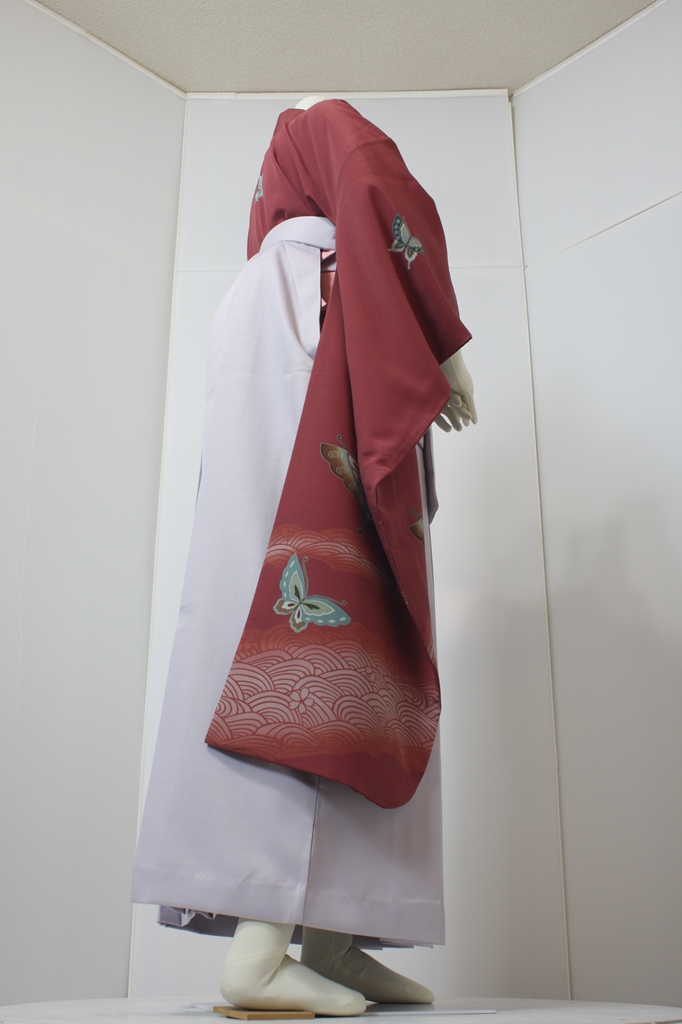 行燈袴回転ポーズ行燈袴回転ポーズand02は、前で手を結んだポーズです。行燈袴と大振袖を組み合わせています。