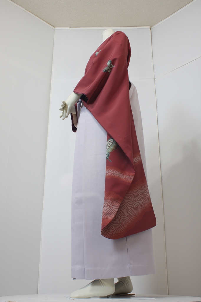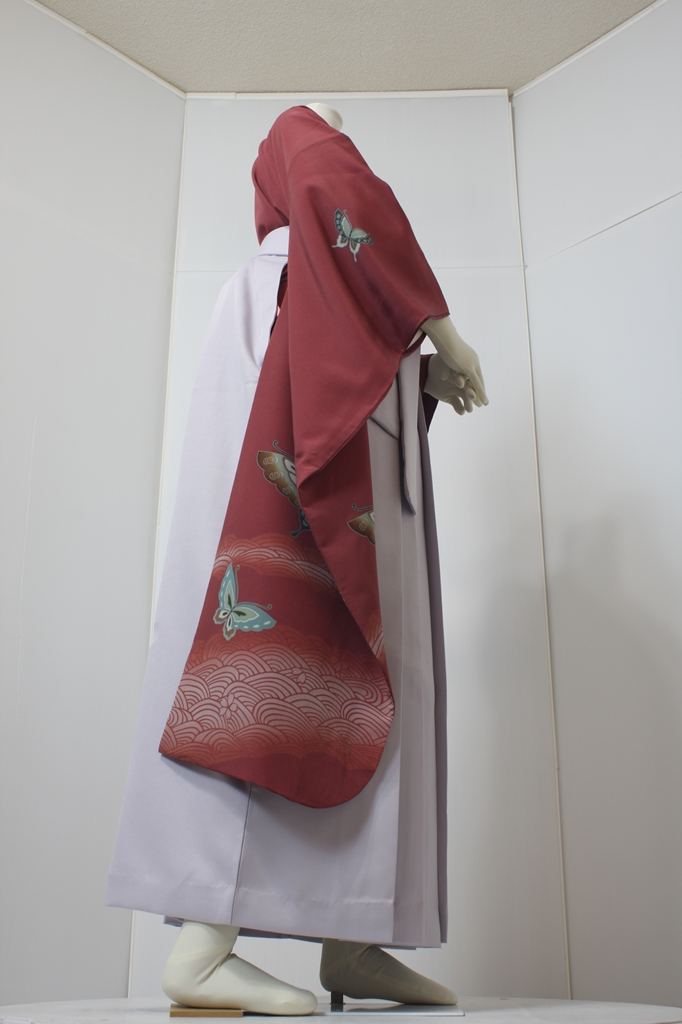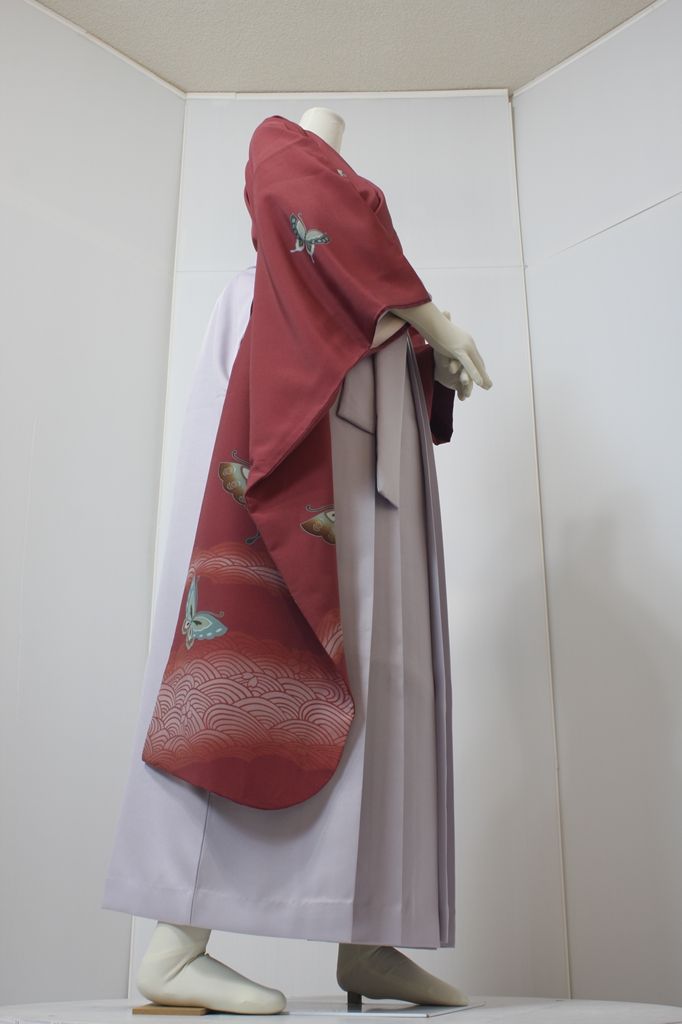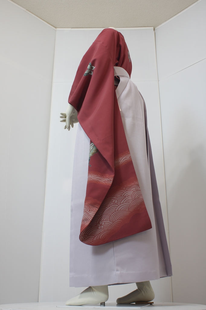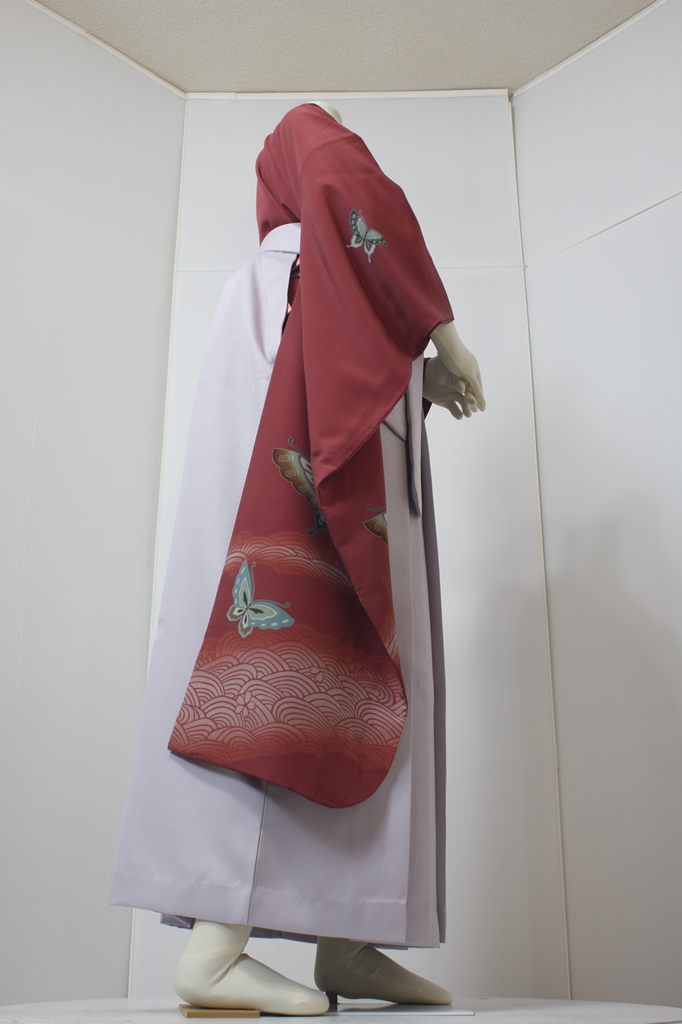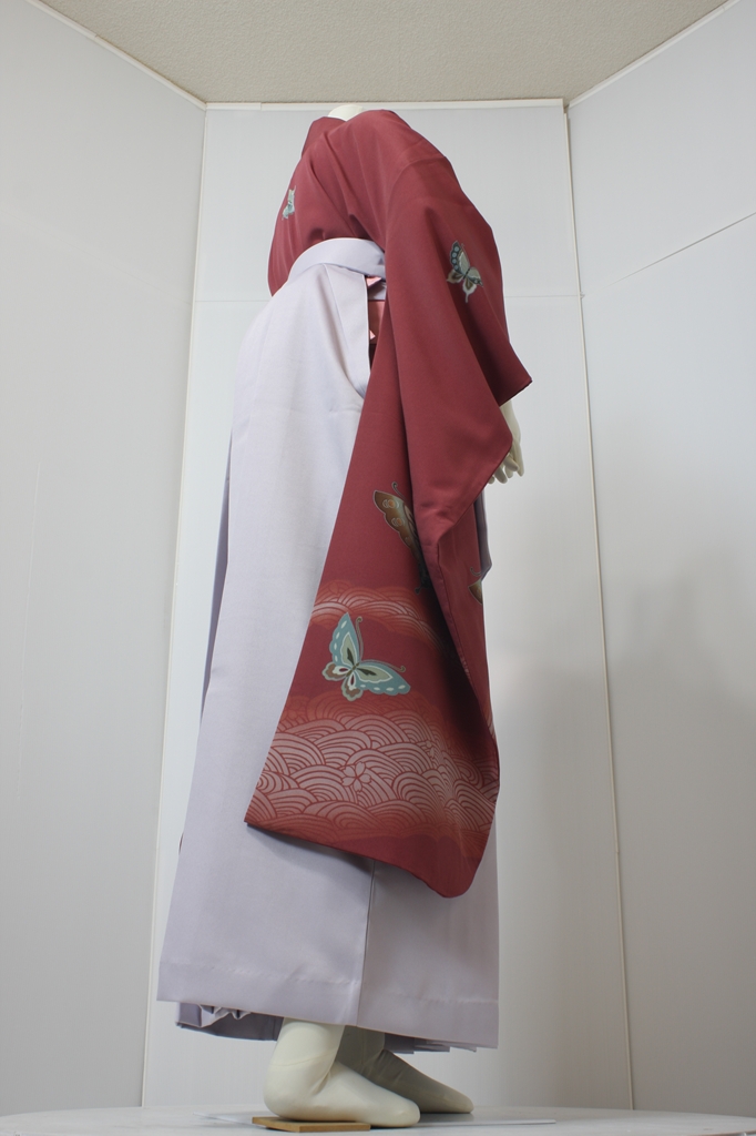 行燈袴回転ポーズ行燈袴回転ポーズand02は、前で手を結んだポーズです。行燈袴と大振袖を組み合わせています。