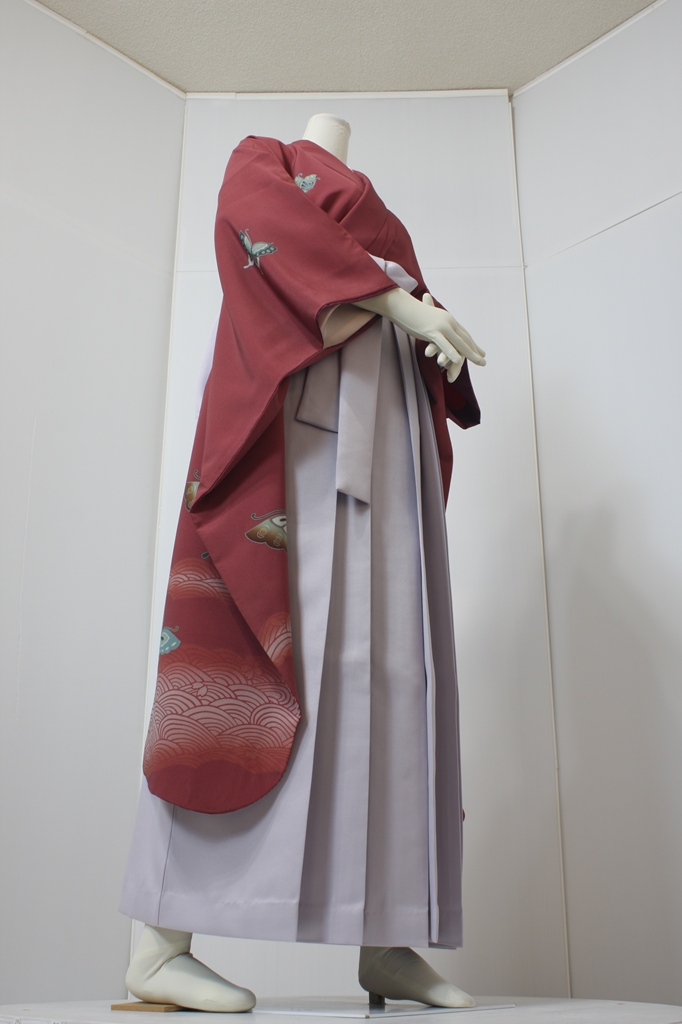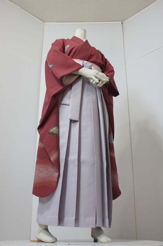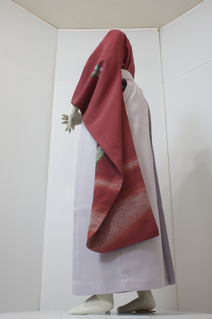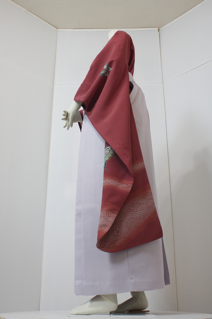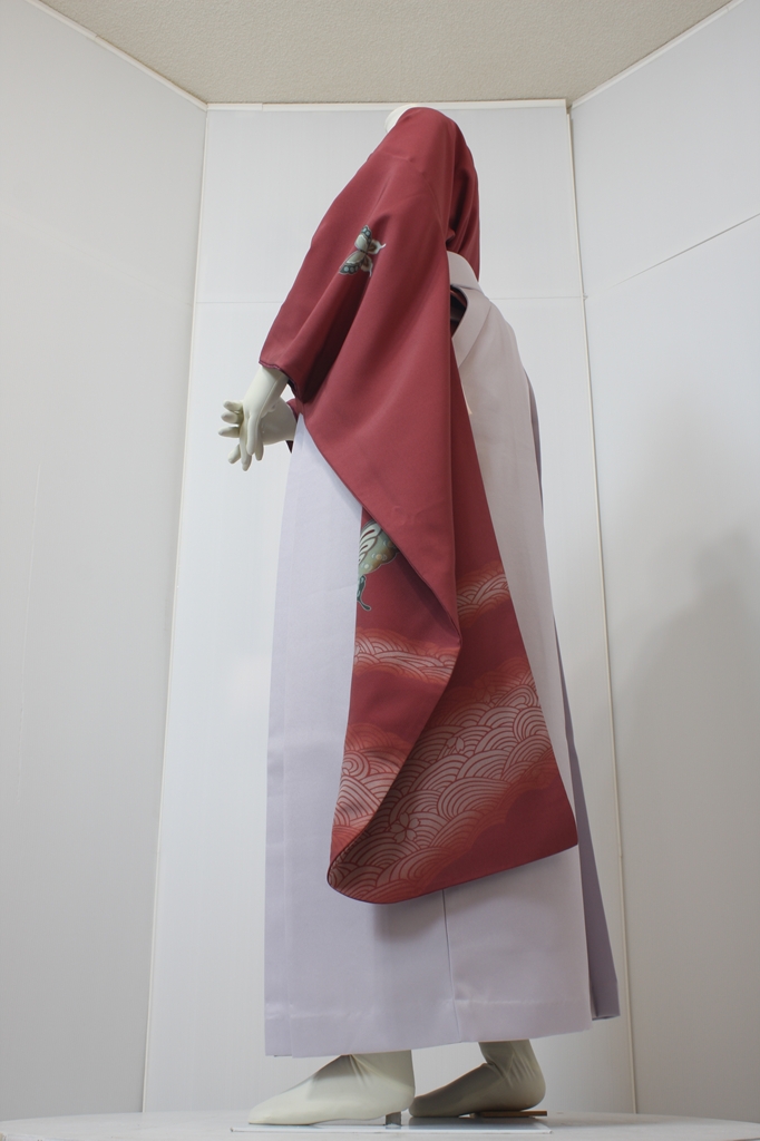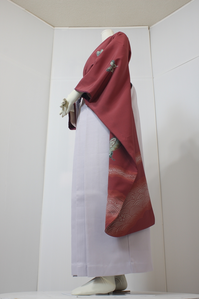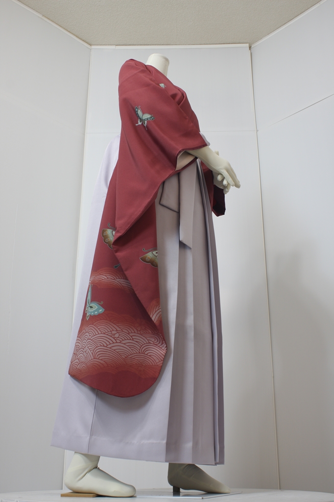 行燈袴回転ポーズ行燈袴回転ポーズand02は、前で手を結んだポーズです。行燈袴と大振袖を組み合わせています。