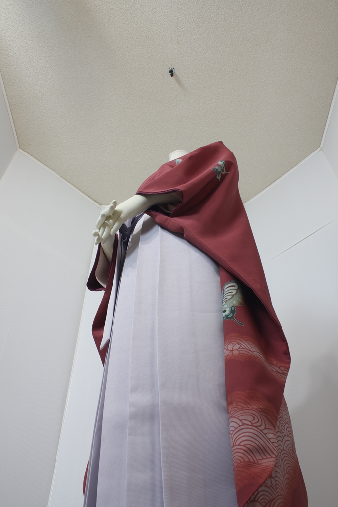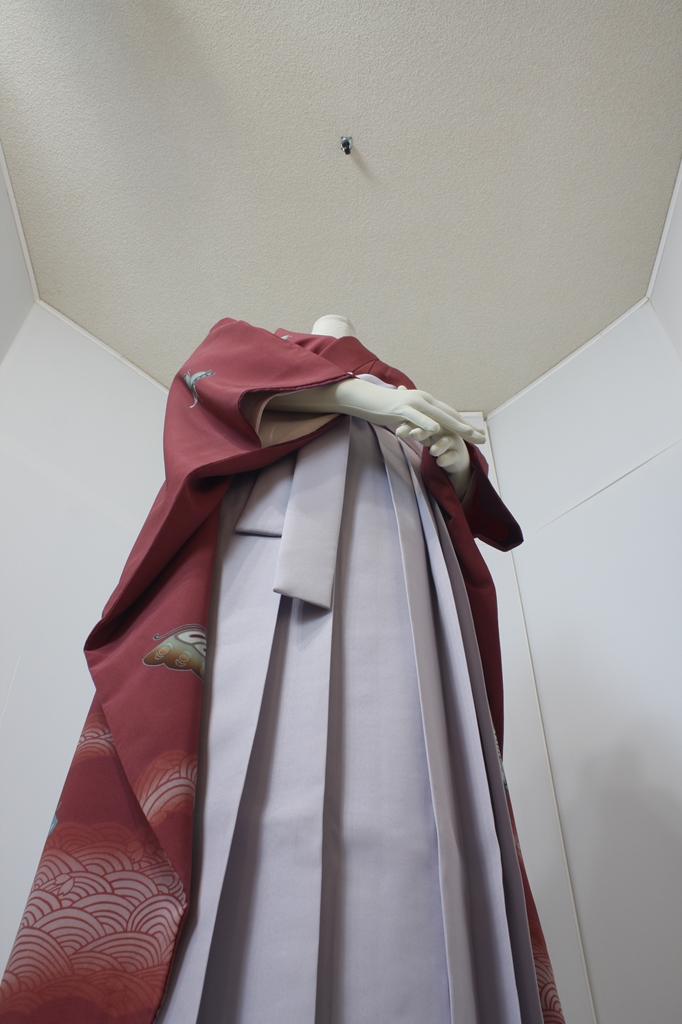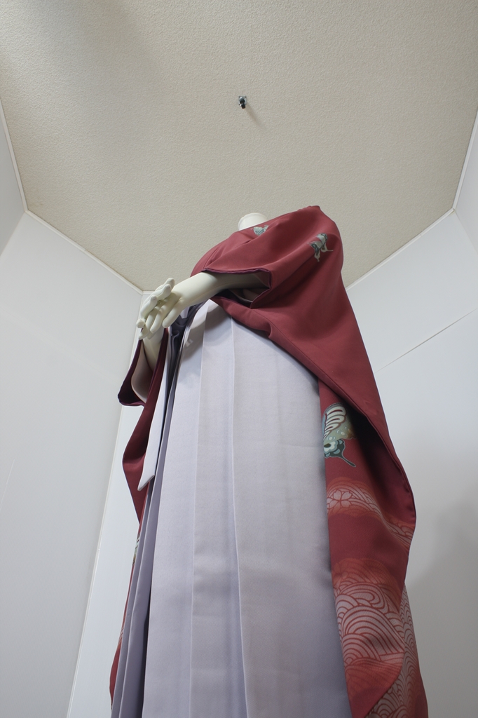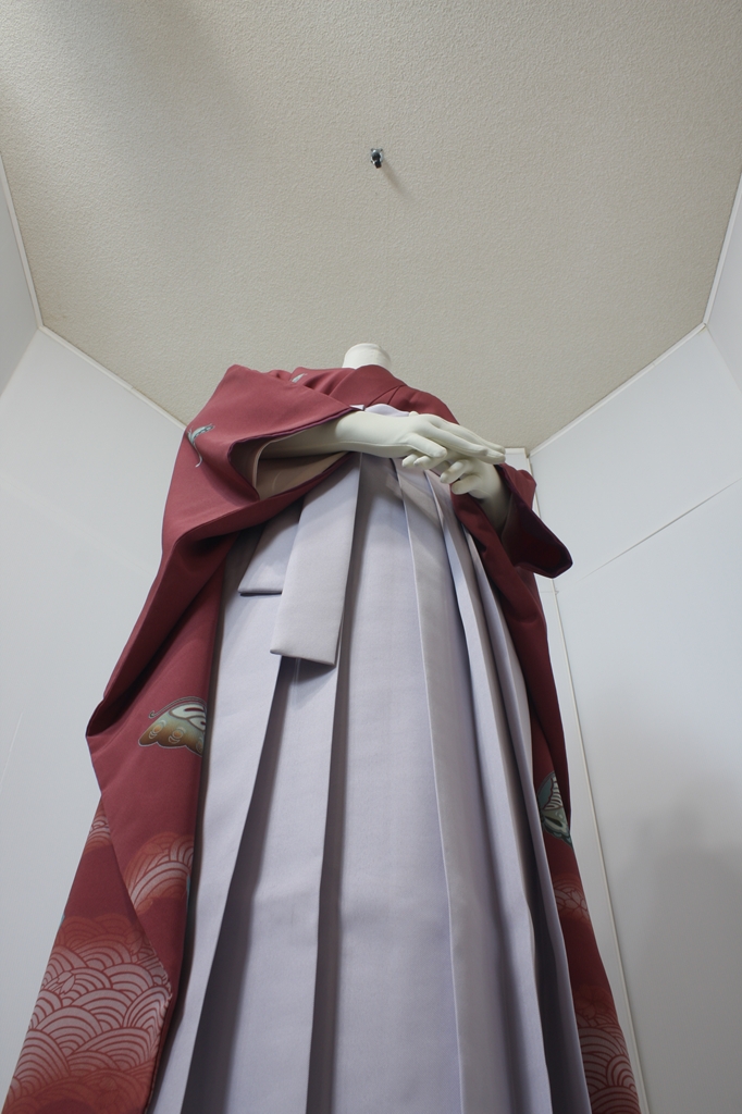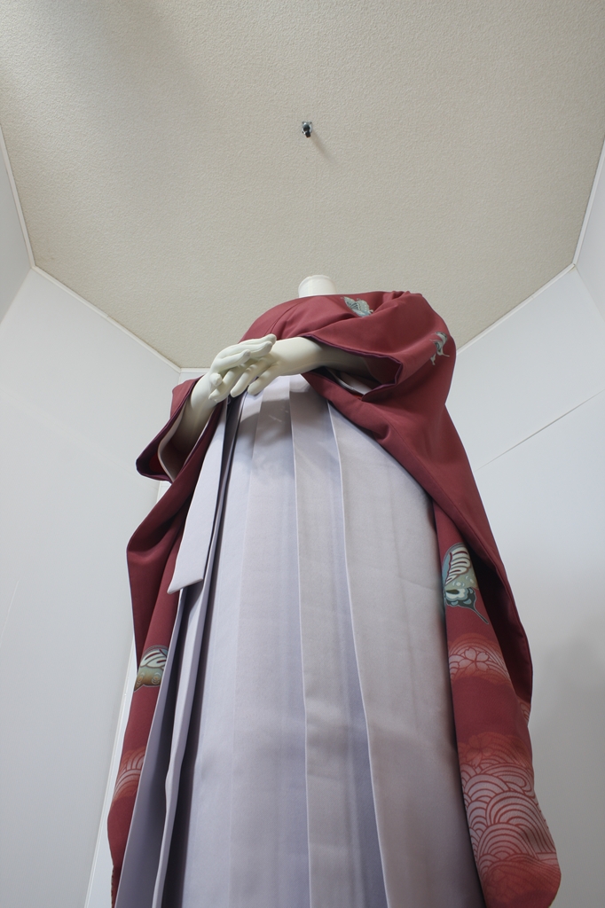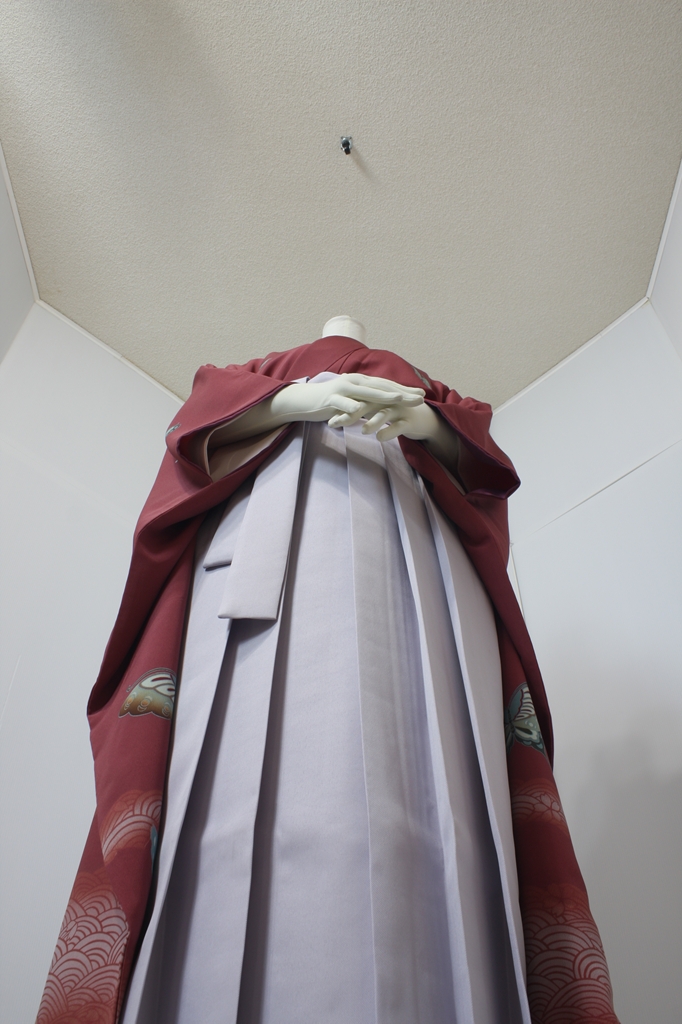 行燈袴回転ポーズ行燈袴回転ポーズand02は、前で手を結んだポーズです。行燈袴と大振袖を組み合わせています。