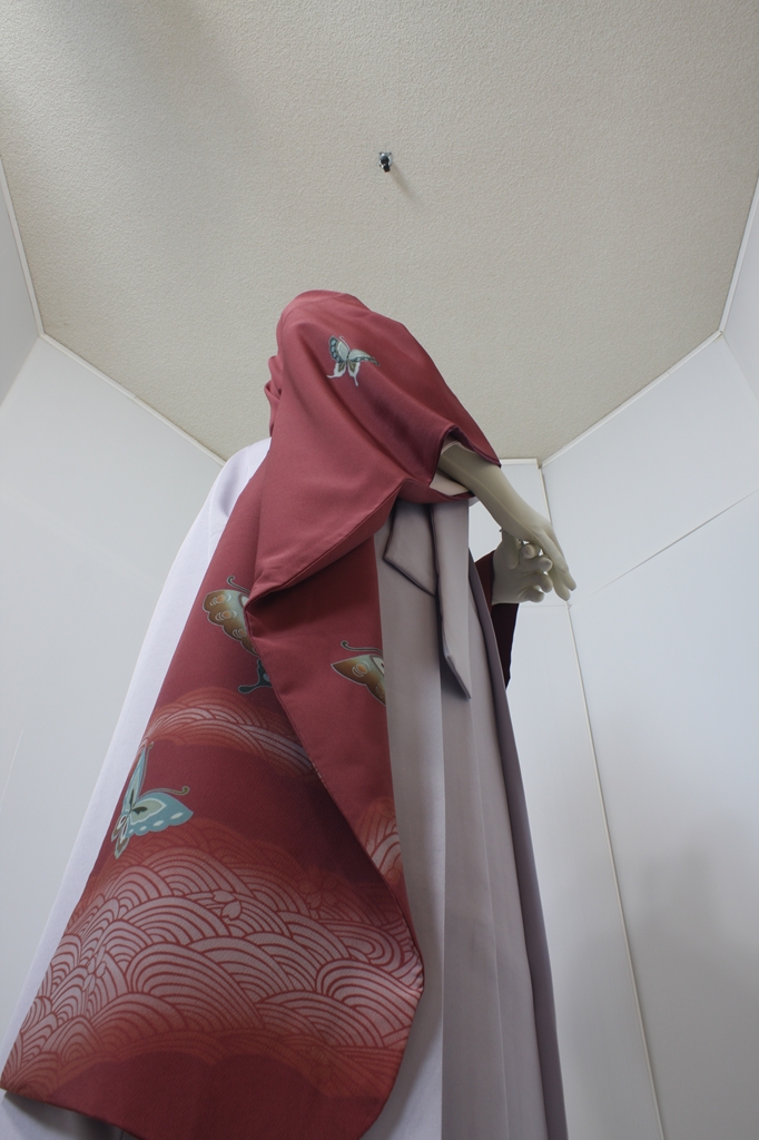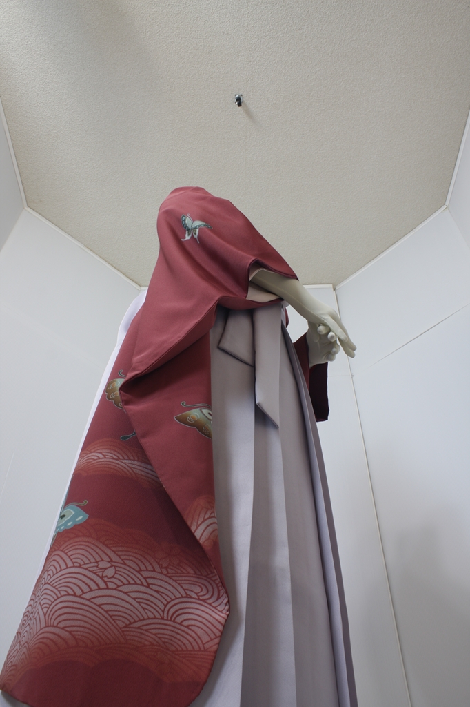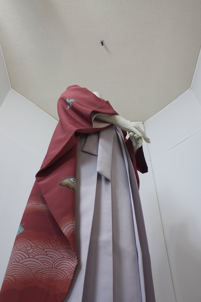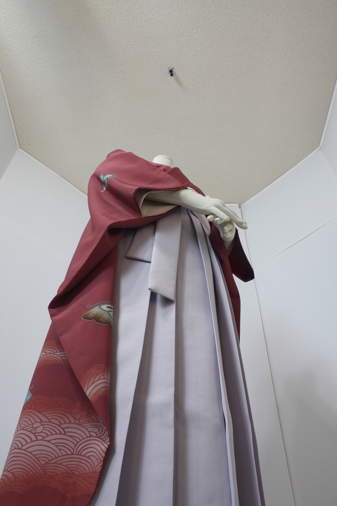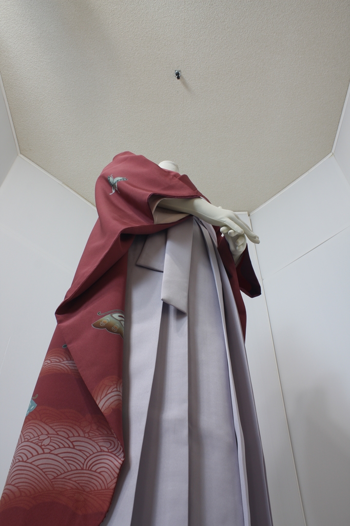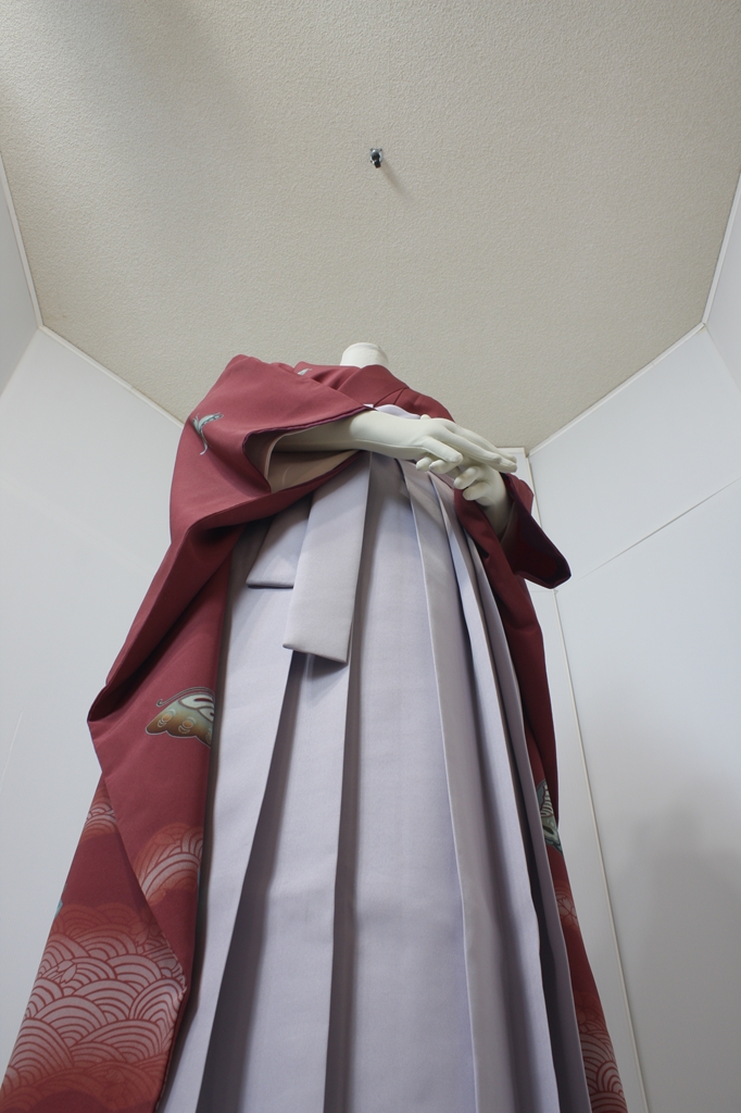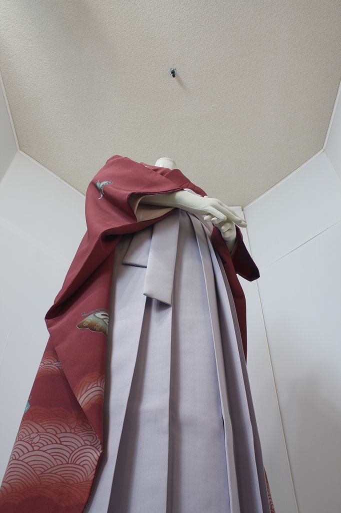行燈袴回転ポーズ行燈袴回転ポーズand02は、前で手を結んだポーズです。行燈袴と大振袖を組み合わせています。