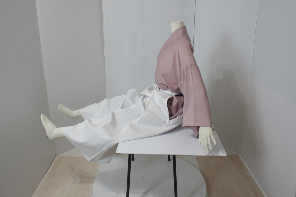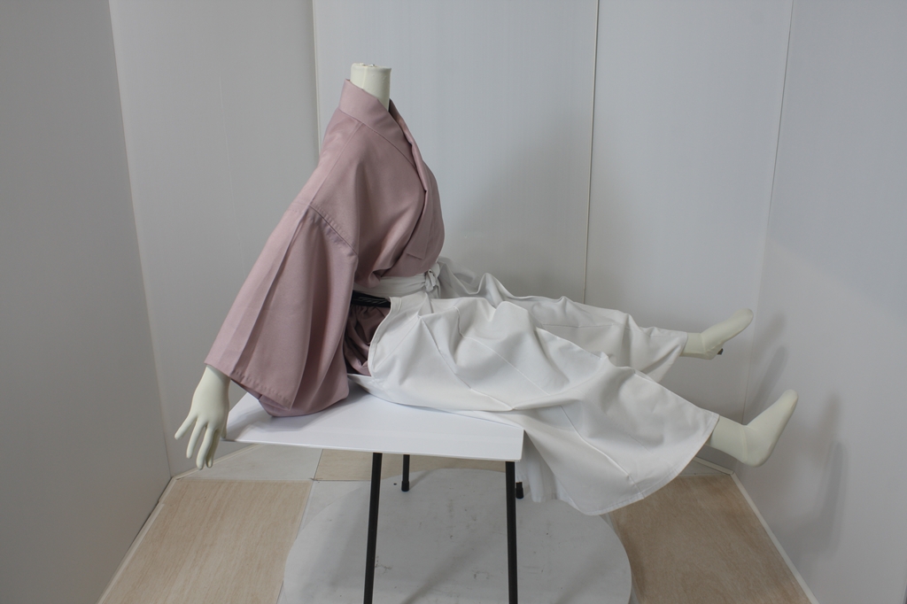 袴回転ポーズ袴回転ポーズhkm19bは、縁台に座り、両脚を上げたポーズです。