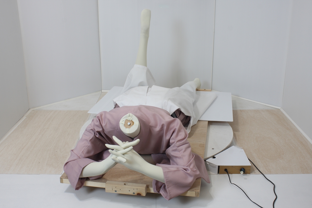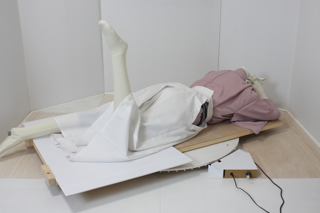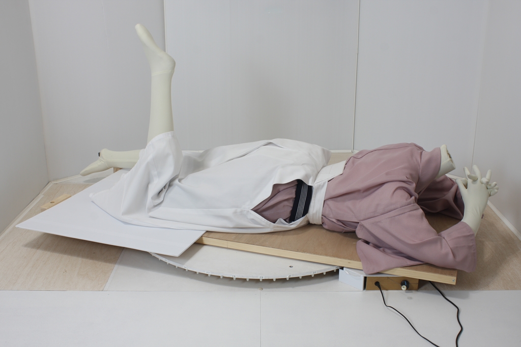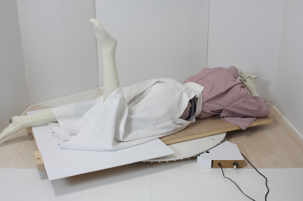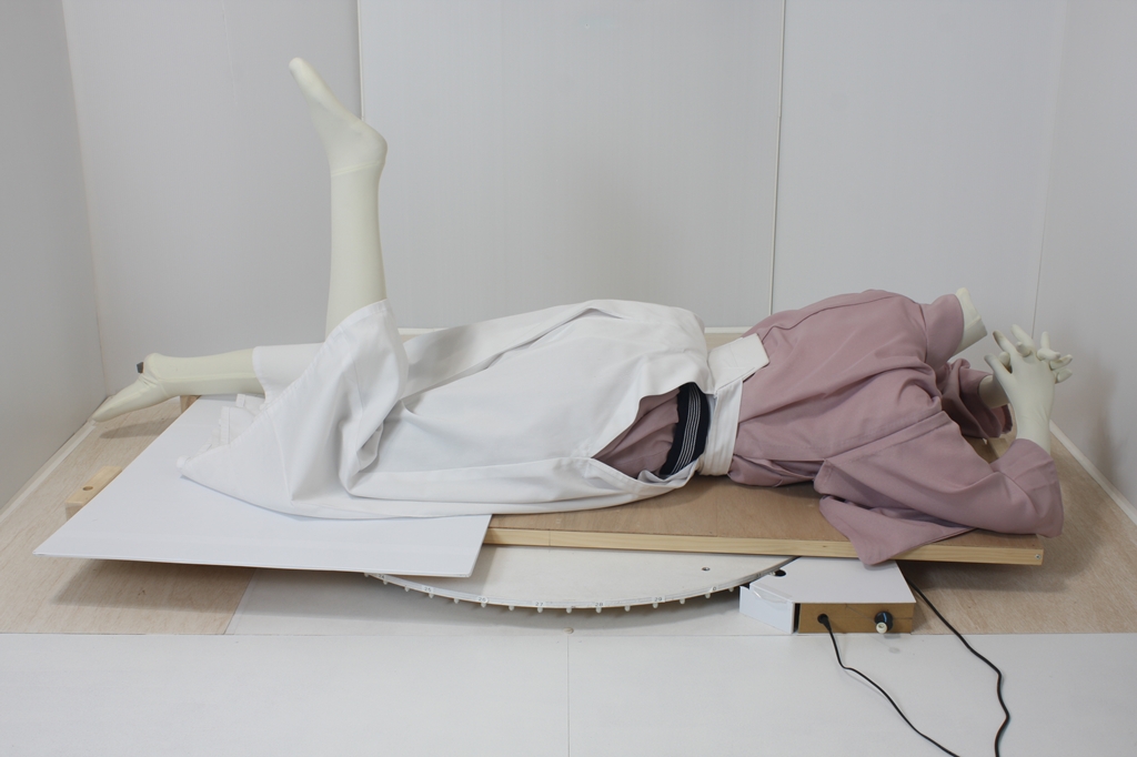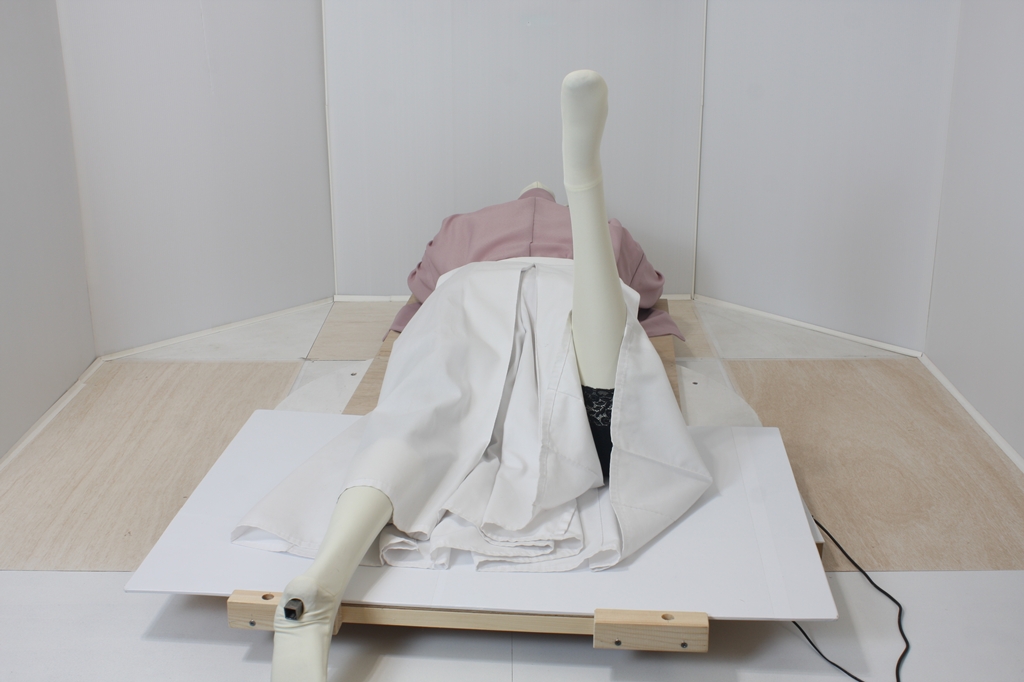 袴回転ポーズhkm26aは、うつ伏せで片膝を曲げたポーズです。