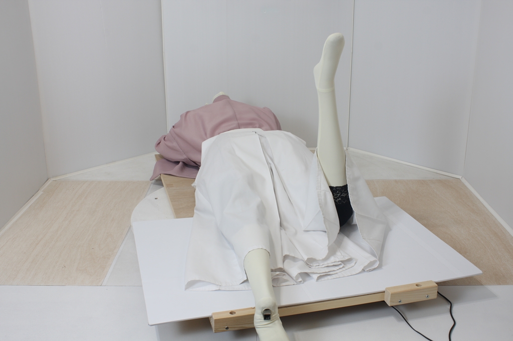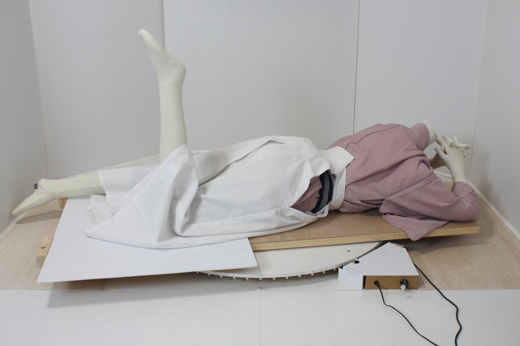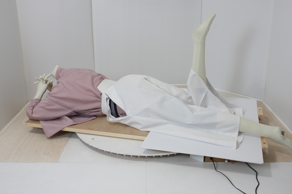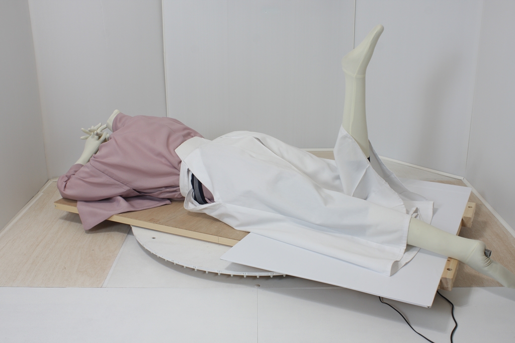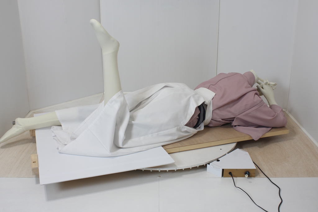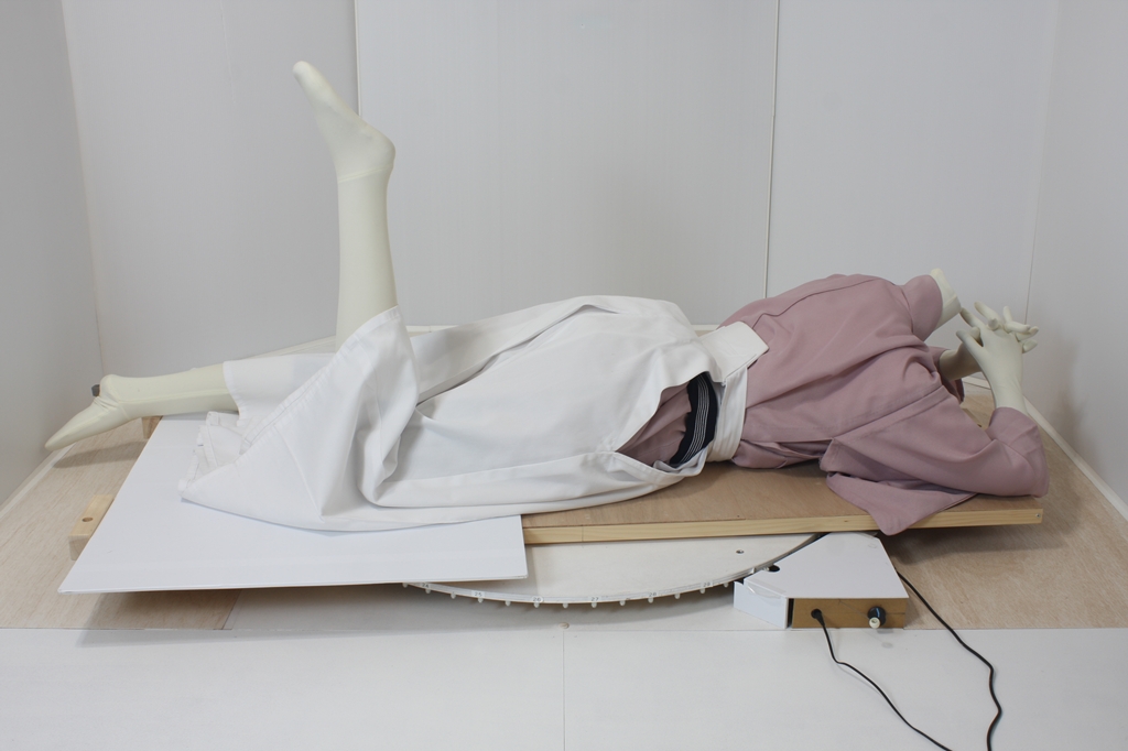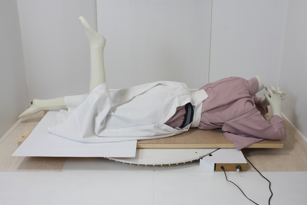 袴回転ポーズ袴回転ポーズhkm26aは、うつ伏せで片膝を曲げたポーズです。