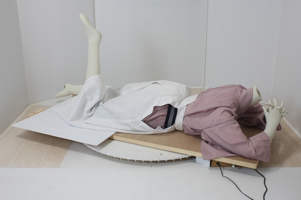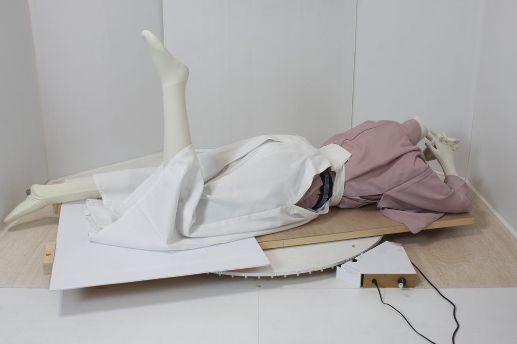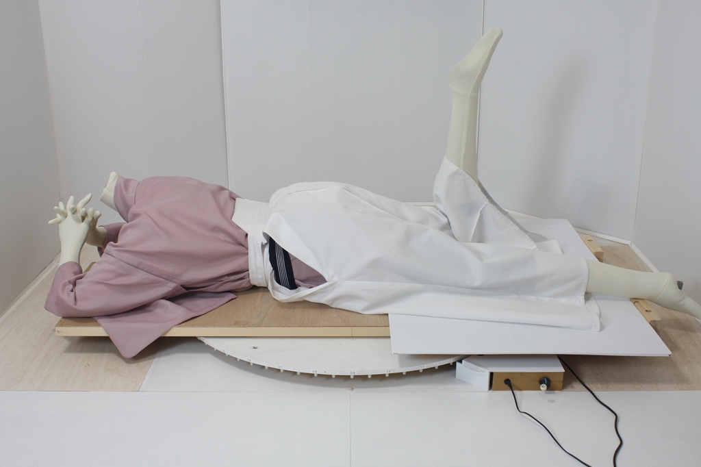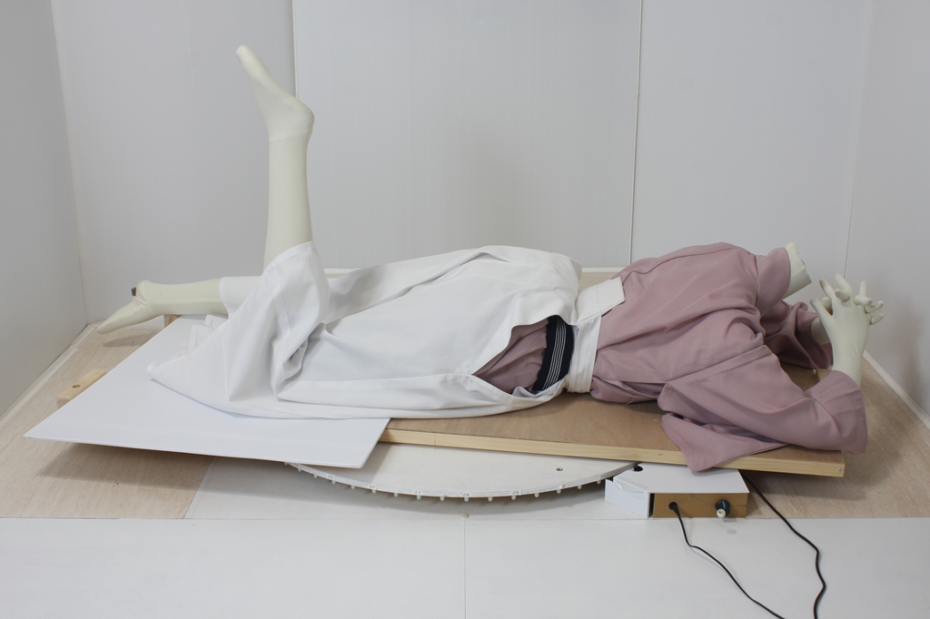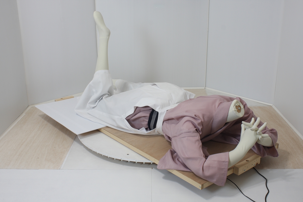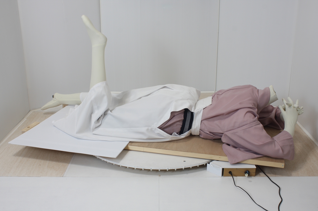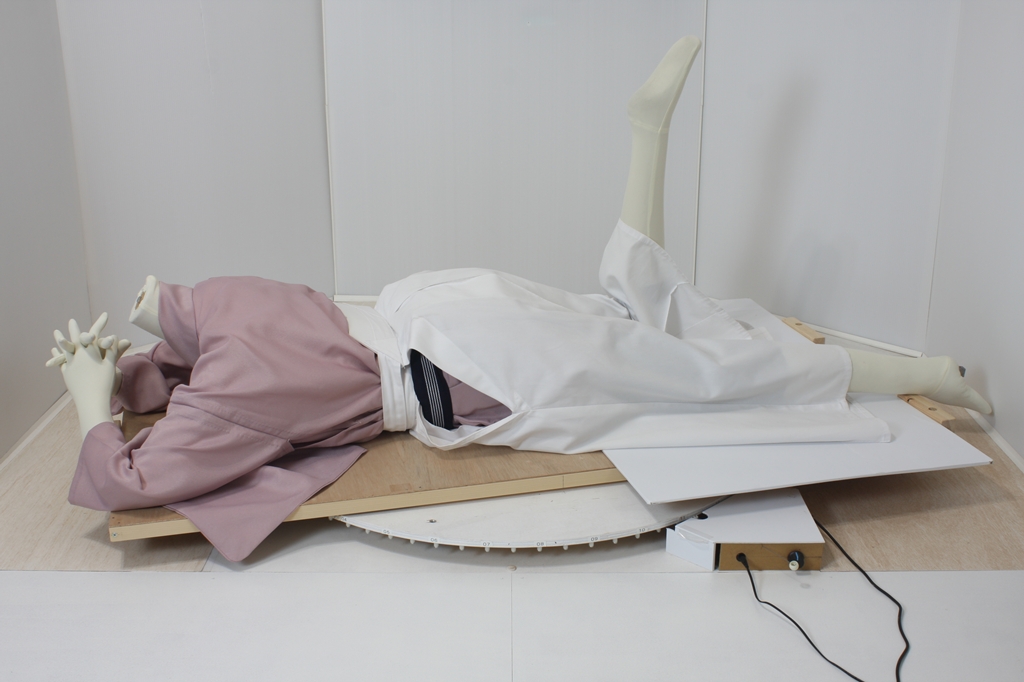 袴回転ポーズ袴回転ポーズhkm26aは、うつ伏せで片膝を曲げたポーズです。
