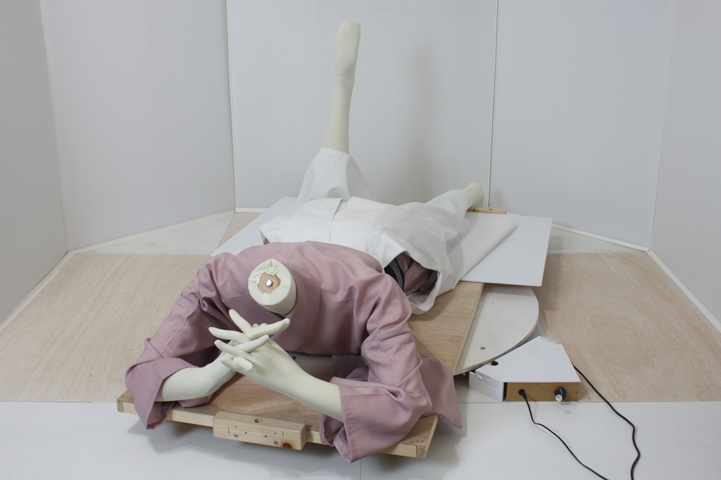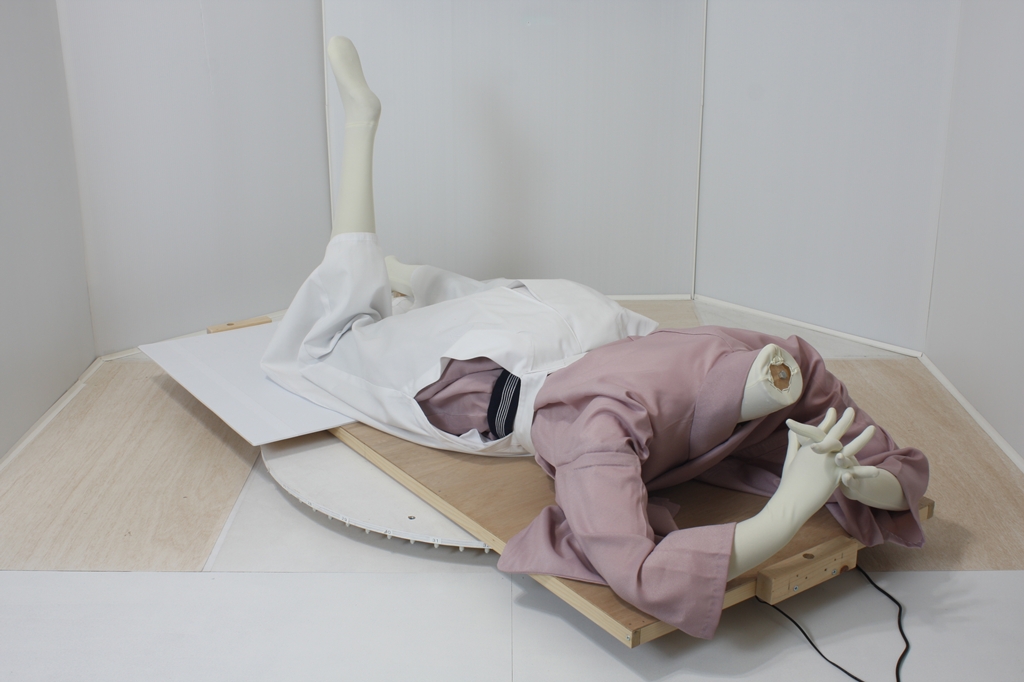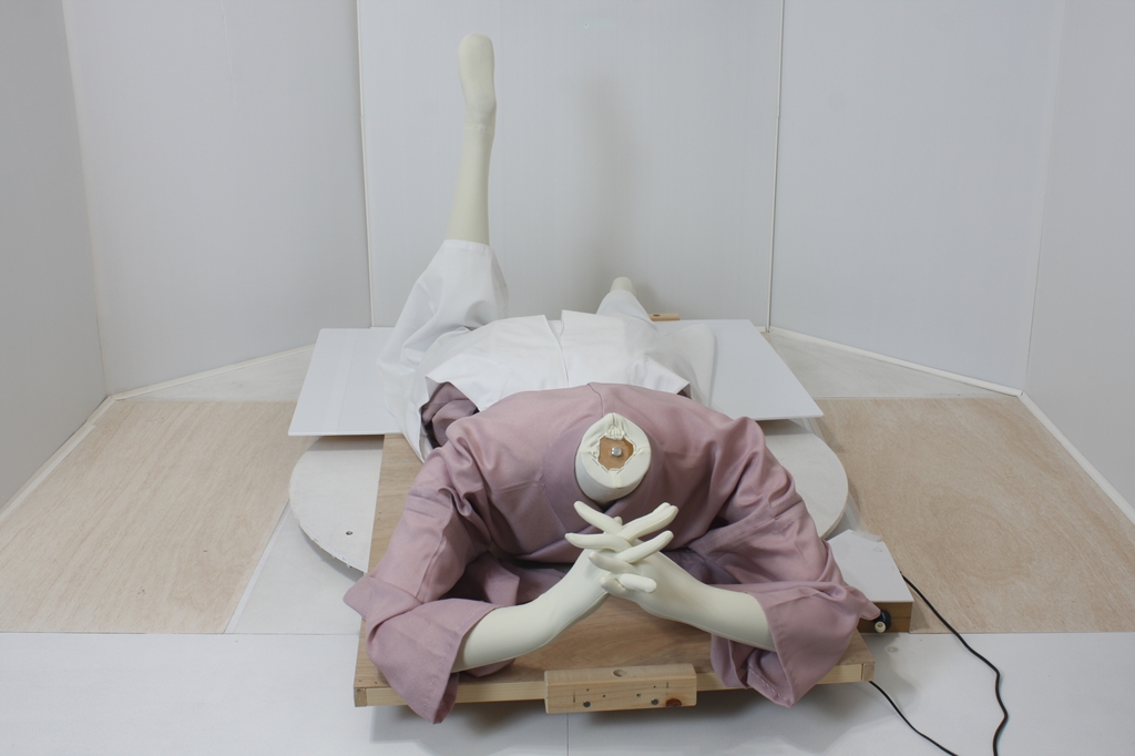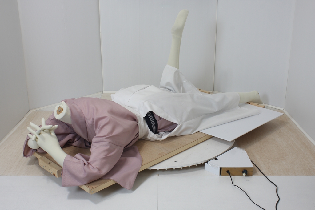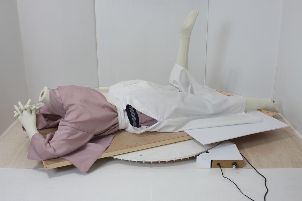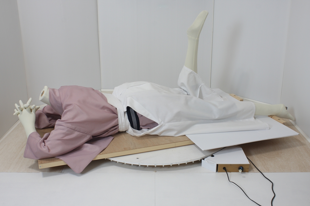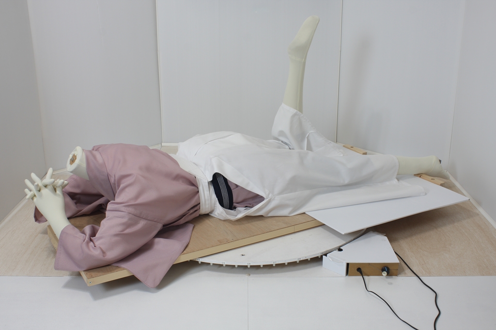 袴回転ポーズ袴回転ポーズhkm26aは、うつ伏せで片膝を曲げたポーズです。