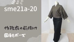 作務衣回転ポーズsme21aは、作務衣+前掛け(ロング)の組み合わせで、歩くポーズです。作務衣回転ポーズsme21a-L45(あおり45度)は、45度のローアングルから撮った5度ステップ、360度の回転イメージです。