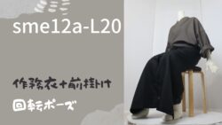 作務衣回転ポーズsme12aは、作務衣+前掛け(ロング)の組み合わせで、椅子に座ったポーズです。作務衣回転ポーズsme12a-L20(あおり20度)は、20度のローアングルから撮った5度ステップ、360度の回転イメージです。