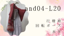 行燈袴回転ポーズand02は、前で手を結んだポーズです。行燈袴と大振袖を組み合わせています。行燈袴回転ポーズand02-L20(あおり20度)は、20度のローアングルから撮った5度ステップ、360度の回転イメージです。